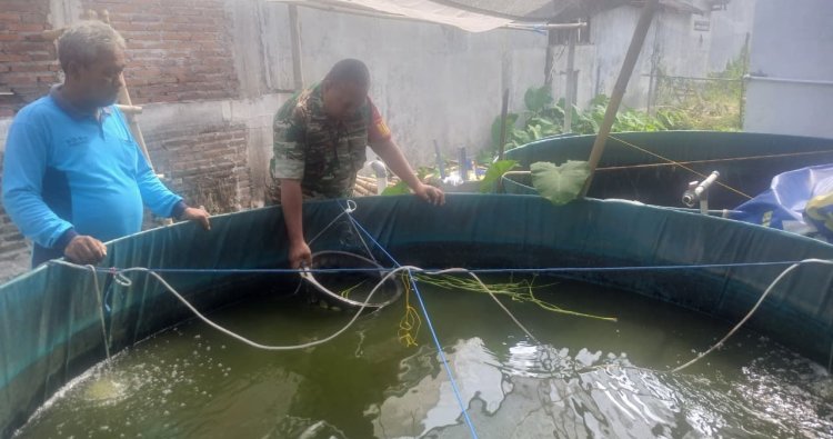 KUDUS - Babinsa desa Prambatan kidul Koramil 09/Kaliwungu Sertu Akwan Efendi dalam upaya mendukung program ketahanan pangan babinsa secara aktif monitoring budidaya ikan lele punya Pak Teguh di Rt 04 Rw 05 Desa Prambatan Kidul, Kecamatan Kaliwungu.Jumat(28/11/2025).