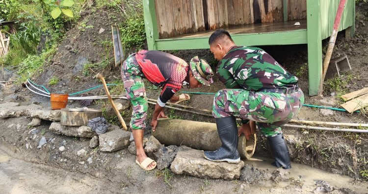 Pengerjaan dilakukan secara gotong royong. Prajurit dan warga tampak kompak menggali saluran, memasang material, hingga merapikan struktur gorong-gorong agar kokoh dan berfungsi optimal. Pembangunan ini dinilai strategis, mengingat lokasi tersebut kerap menjadi titik aliran air saat hujan turun.